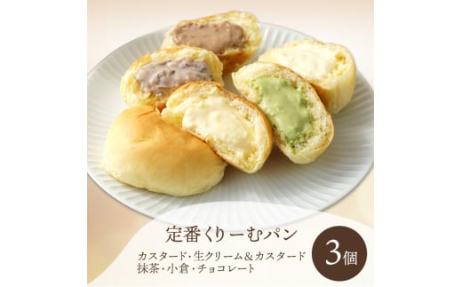 ・定番くりーむパン(カスタード・生クリーム&カスタード・抹茶・小倉・チョコレート)×いずれか3個