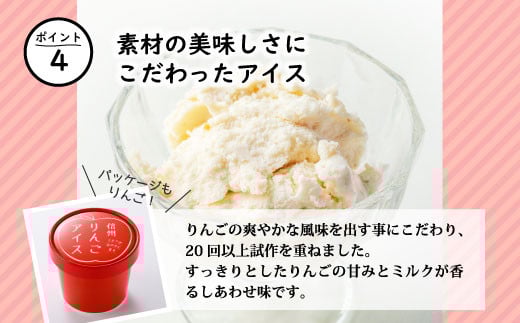 しぼりたて生乳と長野県産りんごを使用した、ミルクがほのかに香る幸せりんごアイス