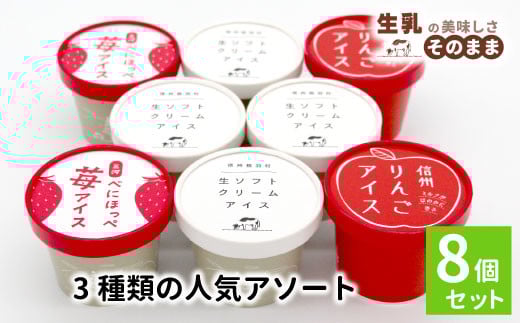 3種類の人気アソート 8個入り 80ml 100ml 牛乳 ミルク スイーツ アイスクリーム 信州 搾りたて アイス りんご りんごアイス アップル りんごミルク りんごスイーツ 苺 いちご 紅ほっぺ ストロベリー 根羽村 5000円 5千円