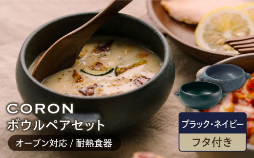 【美濃焼】CORON ボウル(フタ付き) ペアセット ブラック & ネイビー(オーブン対応 耐熱食器)【伸光窯】食器 耐熱皿 鉢 [MAQ031]