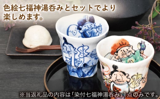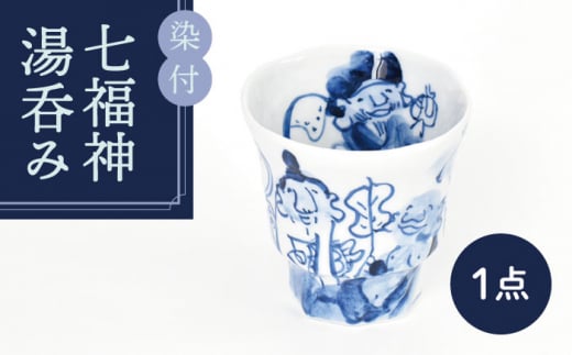 素朴な風合いに藍色の爽やかな絵付けが光る、「染付七福神湯呑」。