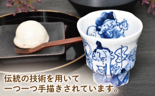 7. 【美濃焼】染付 七福神 湯呑み【金正陶器】 食器 湯吞 お茶 [MAK028]