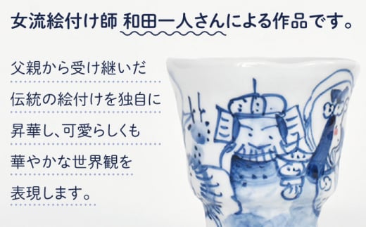 この湯呑を使う方に幸福が訪れるようにと、美濃焼の女流絵付け師である和田一人さんによって、一点一点手描きで絵付けが施されています。