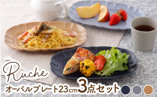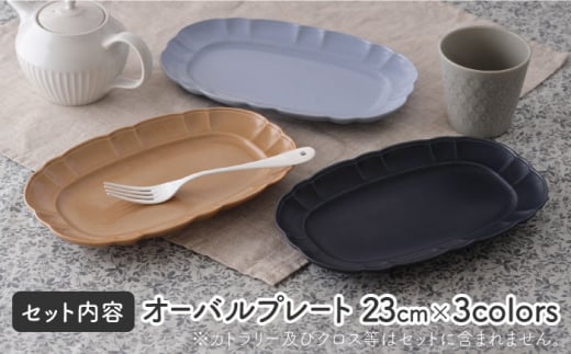 ■オーバルプレート 23cm ネイビー/ライトブルー/モカ各1枚ずつ3点セット