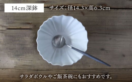 7. 【美濃焼】稜花 14cm・11cm 深鉢 4点 セット(白百合×墨)【Felice-フェリーチェ-藤田陶器】 [MBX062]