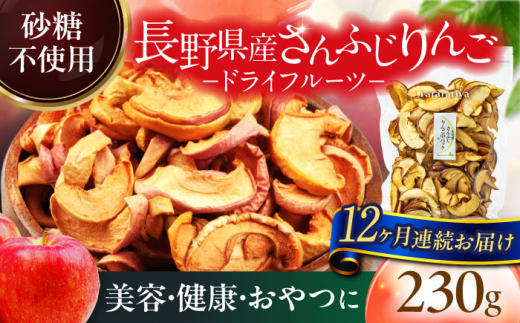 【12回定期便】<砂糖不使用>生乾燥 さんふじりんご 中パック 230g【多々楽達屋】 [MAD052]