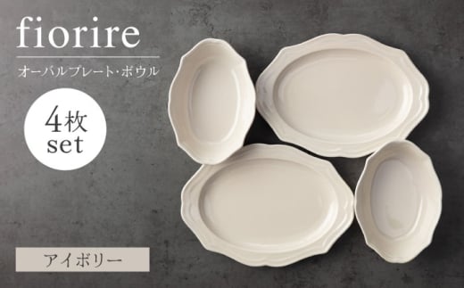 7. 【美濃焼】fiorire-フィオリーレ-オーバルプレート×オーバルボウル4点セット(ivory×ivory)【Felice-フェリーチェ-藤田陶器】 [MBX116]