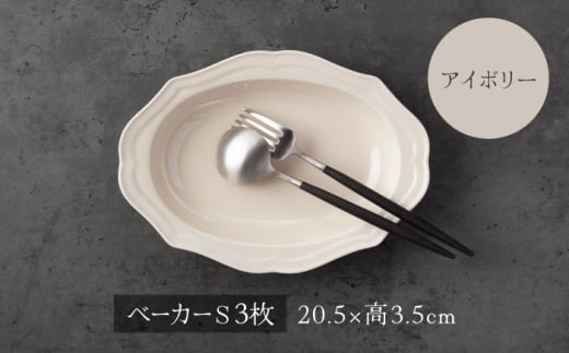 7. 【美濃焼】fiorire-フィオリーレ-オーバルベーカーSサイズ3枚セット(ivory)【Felice-フェリーチェ-藤田陶器】 [MBX121]