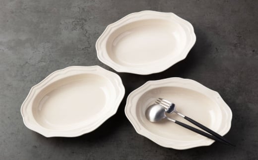 【美濃焼】fiorire-フィオリーレ-オーバルベーカーSサイズ3枚セット(ivory)【Felice-フェリーチェ-藤田陶器】 [MBX121]