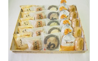 ちいずくっきい5個、そばぶっせ5個、わ(三種合せて)5個、まろんぱい5個、ダックワース5個