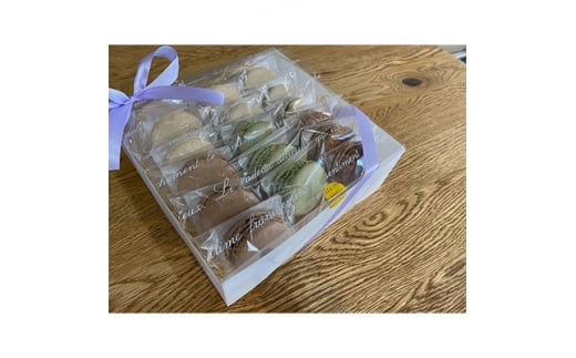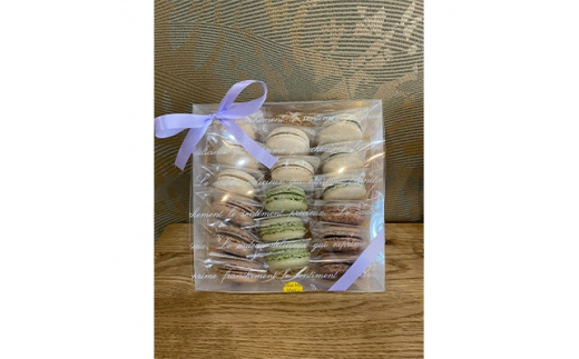 ・自然派マカロン[(カフェ×3個、ミルクティー×4個、よもぎ×3個、チョコレート×4個、抹茶×3個)計17個入り]