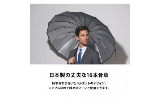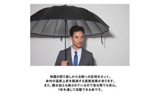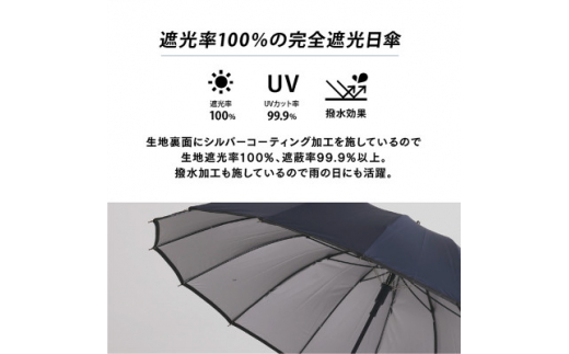 日傘 メンズ 完全遮光 日本製 16本 晴雨兼用 黒色【1506043】