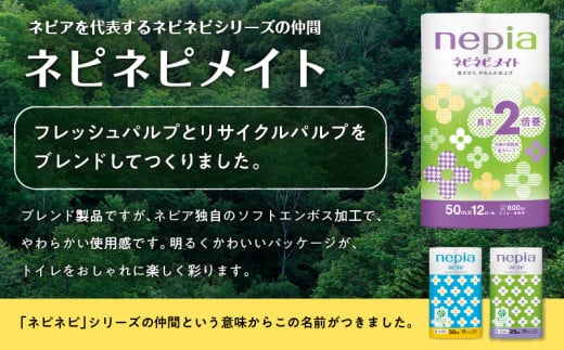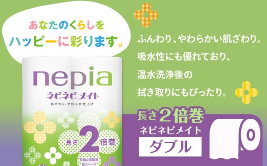 【A042】紙のまち苫小牧 ネピア ネピネピメイト トイレットロール 2倍巻 12ロール ダブル T001-016