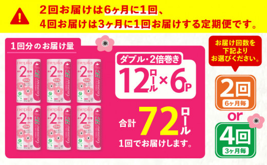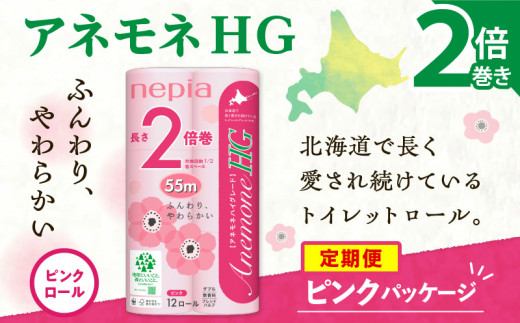 【全2回定期便】紙のまち苫小牧 ネピア トイレットロール アネモネHG 12ロール ダブル 6パック 2倍巻 ピンク(72ロール×2回) T001-T17
