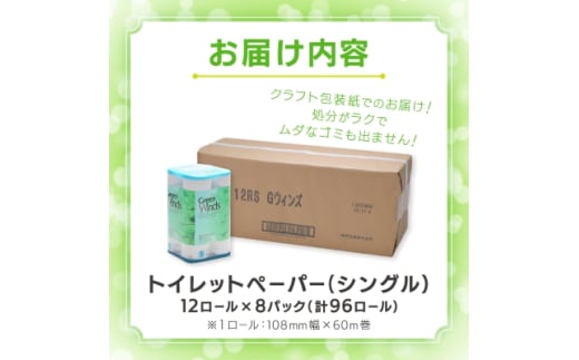 トイレットペーパー グリーンウィンズ (シングル)12ロール×8パック 計96ロール_ トイレットペーパー シングル 人気 日用品 日用雑貨 紙 消耗品 生活雑貨 生活必需品 備蓄 再生紙100% リサイクル エコ 川口市 【1484078】
