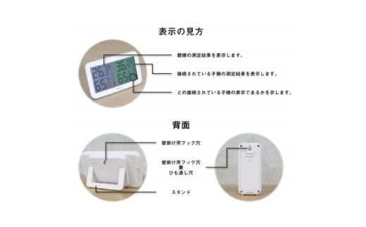 本体(親機)と子機で離れた場所の温湿度を測定して、本体(親機)の表示画面に温湿度を表示します。