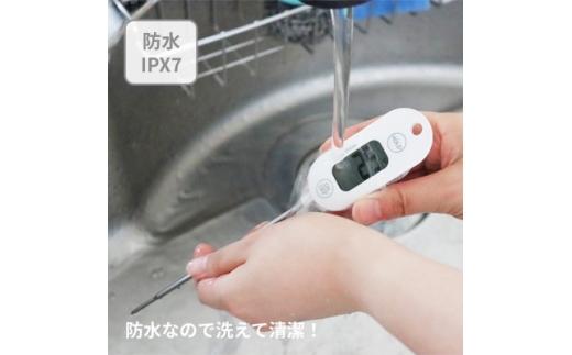 IPX7の防水仕様だから使用後は丸洗いOKのクッキング温度計です。