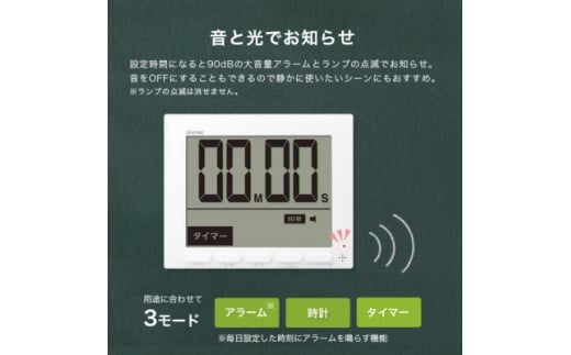 設定時間になると90dBの大音量アラームとランプの点滅でお知らせ。