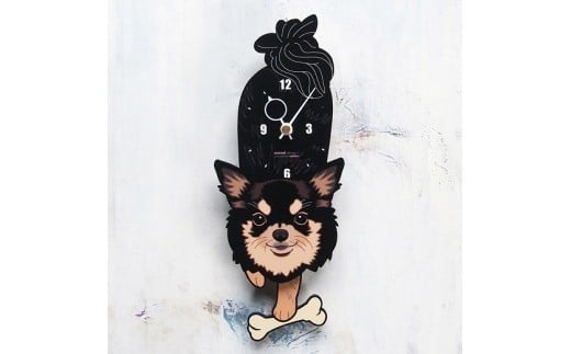 D-49F4 チワワ白黒-犬の振り子時計花04.YELLOW C-CD-049A