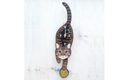 C-74W1 キジトラ-猫の振り子時計毛糸玉01.ORANGE C-CC-074A