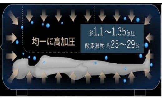 【酸素濃度】 空気中(1気圧):約21% 、カプセル内(1.35気圧):約27%