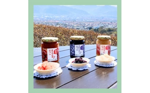 山梨 はぎふる 手作りフルーツジャム(さくらんぼ・桃・ブルーベリー) 3本セット (化粧箱入)【1482154】