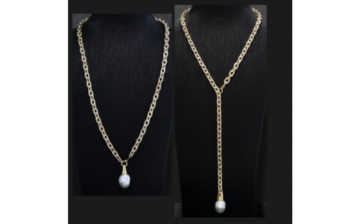 ・K18ロングチェーンネックレス白蝶真珠バロック1点付き[ネックレス:1本(60cm)、チャーム:1点(14mmアップ)]