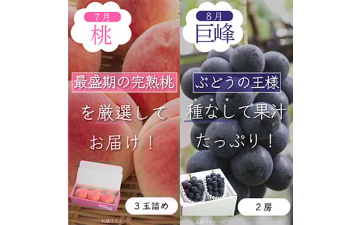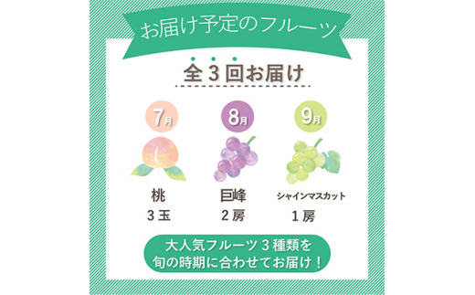 <発送月固定定期便>山梨県産旬の大人気フルーツ<桃・巨峰・シャインマスカット>お試し定期便 全3回_ もも ぶどう フルーツ 果物 セット ギフト 産地直送 【4013021】
