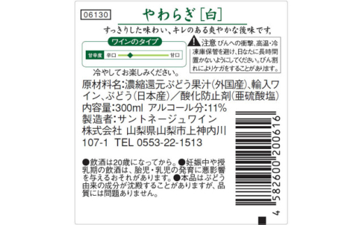 飲食品店で人気の定番ワイン!「やわらぎ」白300ml 12本セット【1577044】
