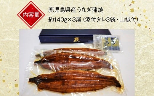 鹿児島育ちのうなぎ蒲焼3尾セットです。備長炭でふっくらと香ばしく仕上げました。