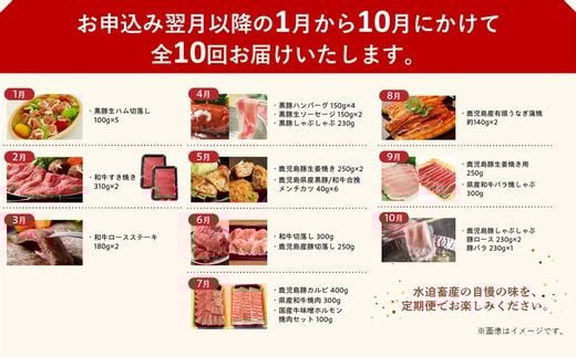 【全10回】鹿児島自慢の豚・牛・うなぎ!10回満足定期便 027-40