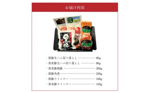 鹿児島の黒豚・茶美豚使用!生ハム、角煮など6種の詰合せです。