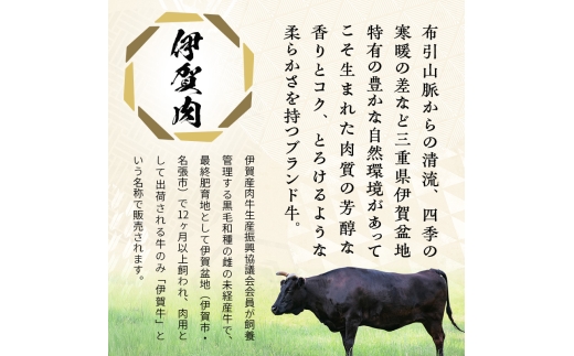 伊賀産肉牛生産振興協議会会員が飼養管理する黒毛和種の雌の未経産牛で、最終肥育地として伊賀盆地(伊賀市・名張市)で12ヶ月以上飼われ、肉用として出荷される牛にのみ「伊賀牛」という名称で販売されます。