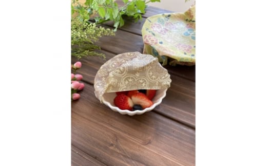 蜜蝋(みつろう)ラップとは、布に蜜蝋や植物性オイル、天然樹脂をブレンドしたものでコーティングした繰り返し使える食品用ラップです。国内製造されており、プラスチック製ラップの使用を減らし地球環境に配慮しつつもエコでオシャレな食材を彩る製品です。