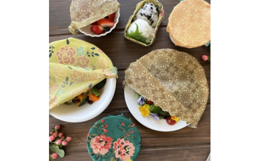 蜜蝋(みつろう)ラップとは、布に蜜蝋や植物性オイル、天然樹脂をブレンドしたものでコーティングした繰り返し使える食品用ラップです。国内製造されており、プラスチック製ラップの使用を減らし地球環境に配慮しつつもエコでオシャレな食材を彩る製品です。
