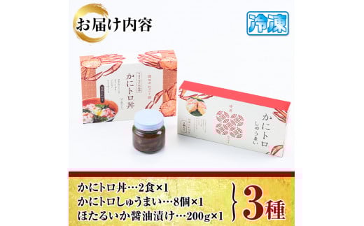 かにトロ丼(2食)・かにトロしゅうまい(8個)・ほたるいか醤油漬け(200g)【sm-AK001】【大漁市場なかうら】