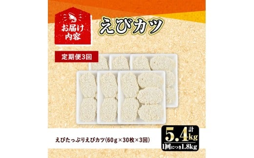 <定期便・全3回(毎月)>えびたっぷりえびカツ(計5.4kg・60g×5枚×6P×3回(毎月)) 定期便 海老 えび えびカツ たっぷり 簡単 惣菜 お弁当 おかず おつまみ 小分け【205800700】【大関食品】