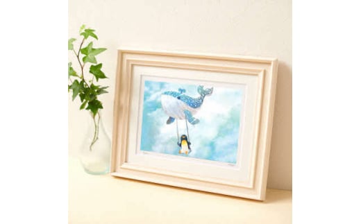 イラスト作家「菜生」アートフレーム〈くじらのブランコ気球〉ペンギン【1508172】