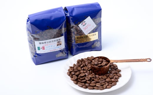 ・自家焙煎ブルーマウンテンNo1クライスデール農園ハーフブレンド、メキシコ産コアティー中深煎り焙煎[豆200g×各1点]