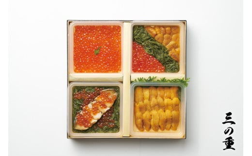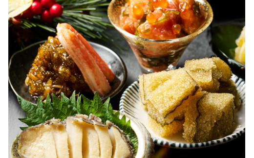 にしん卵(カナダ又はアメリカ産)、鮭卵(三陸産又は北海道産)、紅鮭(ロシア産)、ズワイガニ(アメリカ産)、うに(三陸産)、ほたて(三陸産)、あわび(三陸産)、たこ(宮城県南三陸町産)、めかぶ(宮城県産)