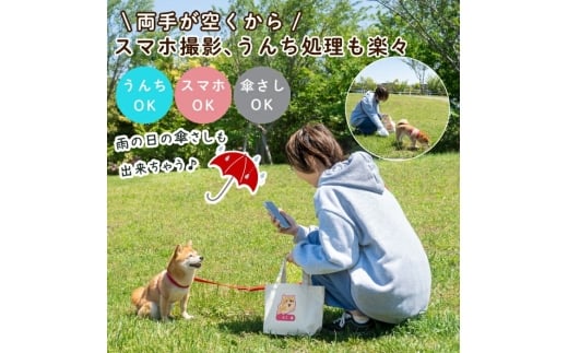 肩掛け・たすき掛けで使えるハンズフリーリードなので、荷物やスマートフォンを持ちながらも安全に愛犬との散歩ができます。