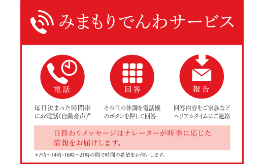 毎日1回電話が自動音声でかかり、その日の健康状態をボタン押してお知らせ。順次発送