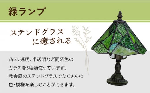 同系色のガラスを5種類使用した、パッチワークのようなランプ♪