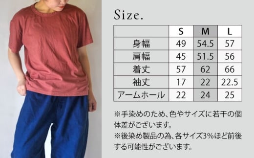 オーガニック コットン 綿100 手染め 草木染め Tシャツ 半袖 トップス ファッション インナー 女性用 レディース 男性用 メンズ ユニセックス 男女兼用 ギフト 贈答 プレゼント
