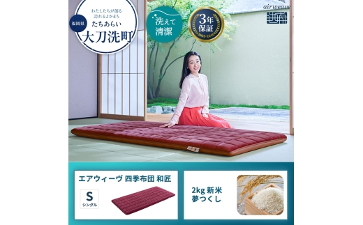 敷布団 期間限定 エアウィーヴ 四季布団 シングル 和匠 & 新米 2kg 2025年産 夢つくし セット 体圧分散 三つ折り マットレス 三つ折りマットレス 敷き布団 洗える 丸洗い 寝具 エアウィーブ 米 お米 福岡県 大刀洗町