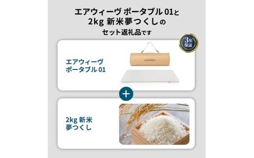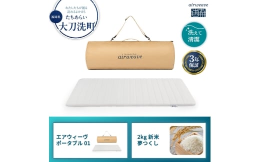 期間限定 エアウィーヴ ポータブル 01 シングル & 新米 2kg 2025年産 夢つくし セット 敷き マットレス パッド マットレスパッド 洗える 丸洗い 寝具 肩こり 健康 昼寝 エアウィーブ 米 お米 日本製 福岡県 大刀洗町