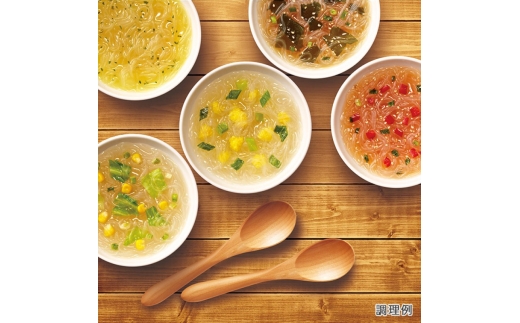 ・5種類の味の春雨スープ:10食入(わかめ醤油、かきたま海鮮風塩、野菜スープ、韓国風チゲ、グリーンカレー風味×各2食)×4袋(40食)
