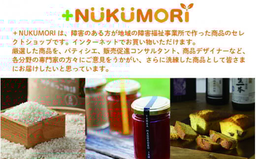 +NUKUMORIは、障害のある方が地域の障害福祉事業所で作った商品のセレクトショップです。