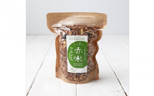 養父市小佐産の赤米と養父市のあさぎ豆を使用したグラノーラ、ノンオイル・グルテンフリー・保存料、着色料不使用で、たった7つの厳選食材のみで作った『赤米グラノーラ』。