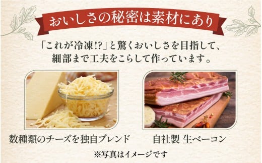 3種のチーズとベーコンの旨みがひとつになった、風味豊かな味わい